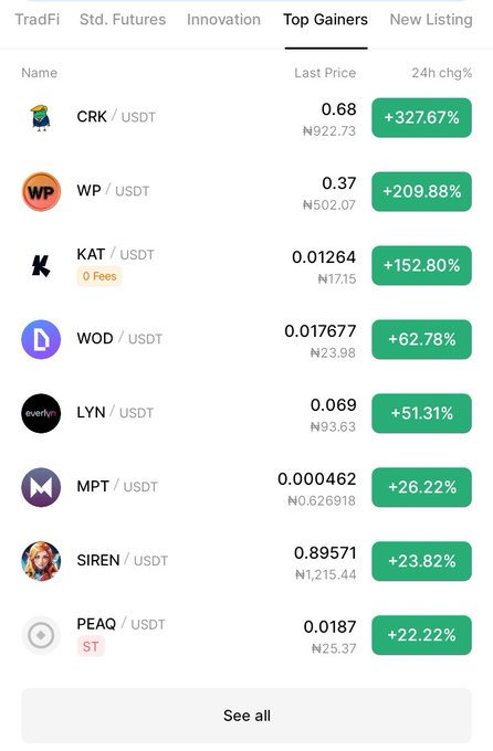 BingX Top Gainers going wild! $CRK +327% $WP +209% $KAT +152% Altcoin momentum is heating up Don’t miss the action #CryptoGainers #BingX