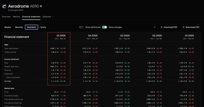 Did you notice @AerodromeFi' Q1 2026 numbers so far look rough on the surface.