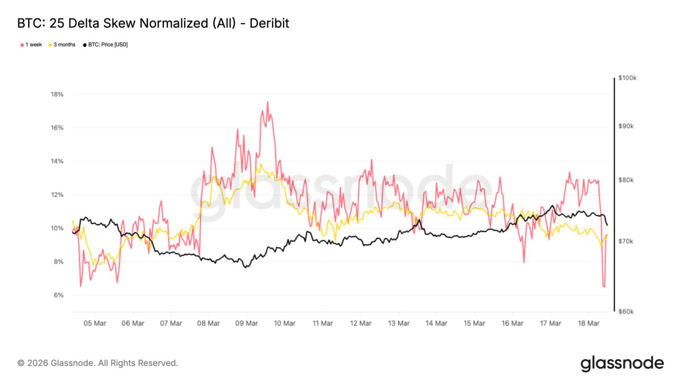 The current skew indicates that the market is shifting from panic protection to a more balanced options structure, while also preparing for a possible tactical rebound.