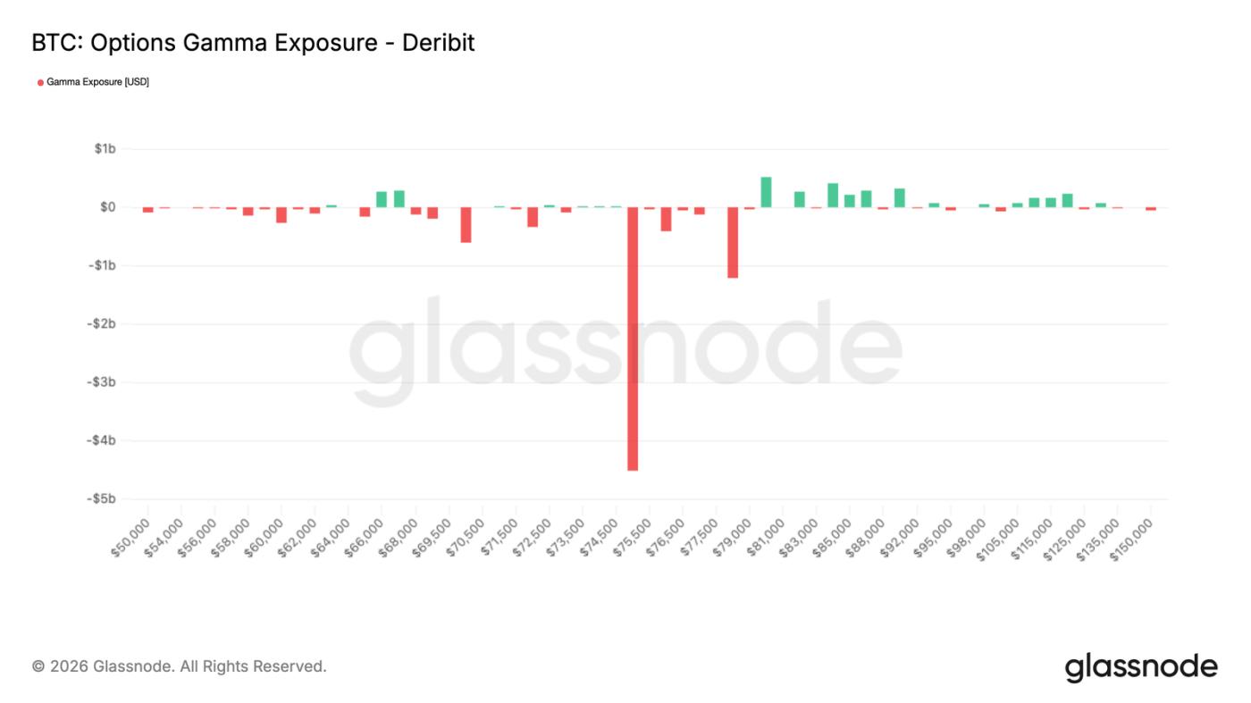 The only meaningful level right now is $75,000 – there's roughly $4.5 billion of negative Gamma piled up there. Bitcoin is currently consolidating below this level, and even a slight upward move could trigger market makers to buy and hedge, pushing the price above $78,000.
