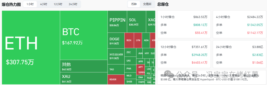 In the past 24 hours, a total of 115,965 people across the internet have had their positions liquidated, with a total liquidation amount of $388 million. Long positions were liquidated for $283 million, and short positions for $7.106 billion.