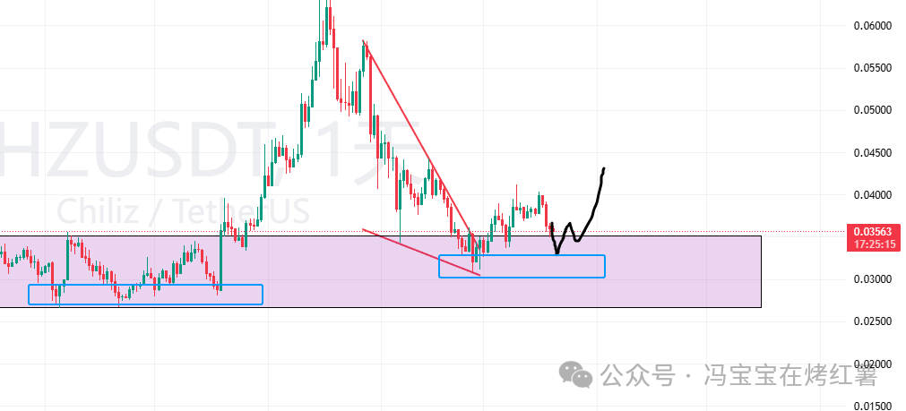Wait for the downward structure to complete before gradually building positions. There's a high probability of another dip before the upward move. First, keep an eye on the 0.030-0.027 support zone. If it reaches that level, you can enter with a small position and low leverage. The rest is just waiting patiently.