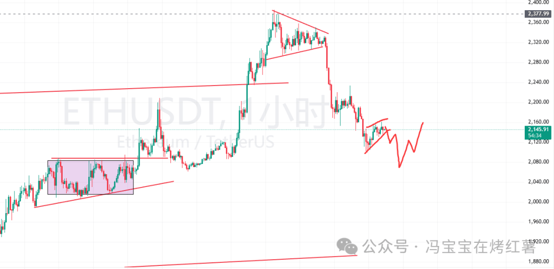 Ethereum has rebounded after testing the bottom in the short term, but this is only a weak halt to the decline; the price has not yet bottomed out. The ideal support level is between 2050 and 2080. The subsequent scenario is quite clear: a double bottom is highly probable.