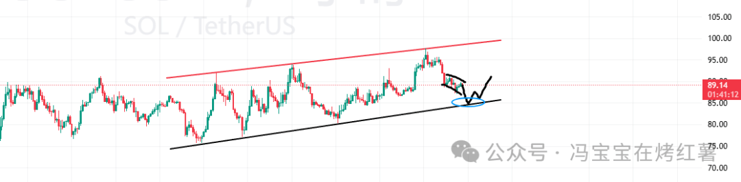 Sol's recent surge failed to hold, and it followed the broader market downwards, showing signs of weakness. The key level to watch is 85; if it holds, there might be another rebound, but if it fails to hold, it will likely head towards new lows.