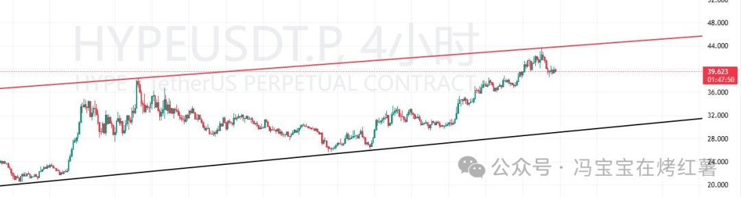 Hype has been showing strong momentum recently, consistently moving upwards within an upward channel. However, it has now encountered resistance at the upper channel line and is unable to continue rising. Furthermore, the upward momentum on the daily chart is weakening, clearly indicating a potential top and a short-term pullback is highly probable. The first support level to watch is around 36U, with stronger support near the lower channel line at 32U.