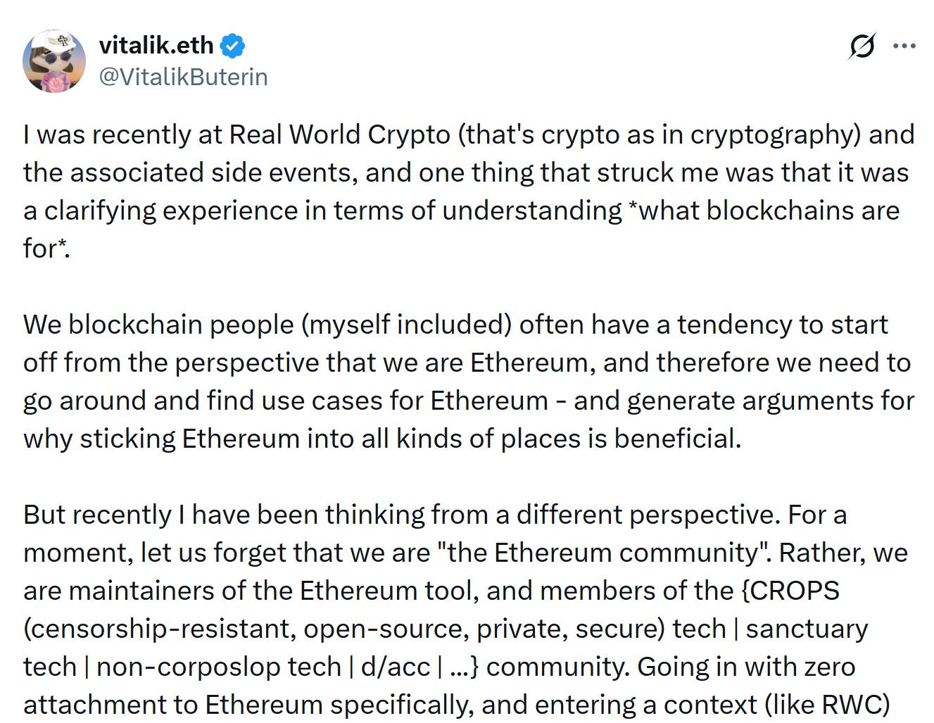 This may be Ethereum's most honest self-positioning to date.