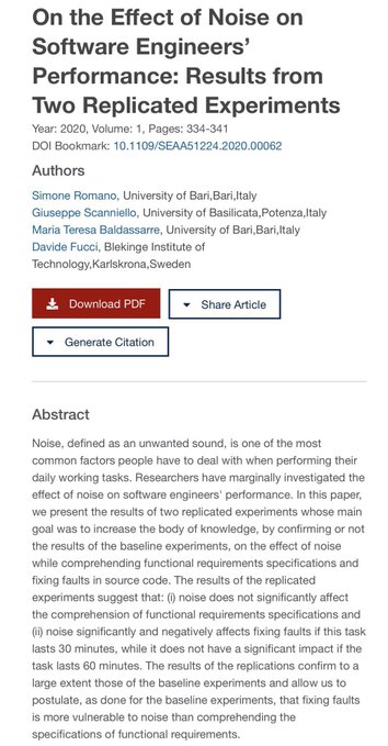 The background noise in open offices, in multiple experiments, decreases the ability to do analytical work, increase bugs in software, and decrease the ability to find bugs.
