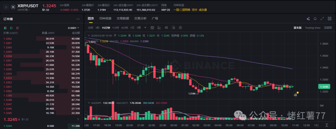 Currently, XRP is priced at approximately $1.32 , with a ratio of approximately 0.00002 to Bitcoin.