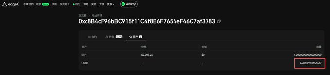 50 million USDC entered EdgeX from the @edgeX_exchange treasury. Is this for market making or a buyback in preparation for the TGE (Treasury Exchange) 3 days later $EDGE? 1⃣ Data on Defillama shows that the EdgeX treasury decreased by $50 million stablecoins in the past day, from $190 million to $140 million. Defillama data: defillama.com/protocol/edgex?t...… 2⃣ I checked on-chain and found two wallets, including the market maker Amber Group, that transferred the corresponding 50 million USDC across chains to EdgeX. The receiving address 0xc8B...783 currently holds approximately 75 million USDC on EdgeX. USDC transferred to EdgeX: intel.arkm.com/explorer/addres...… intel.arkm.com/explorer/addres...… USDC receiving address in EdgeX: pro.edgex.exchange/zh-CN/explo...… 3⃣ I previously saw news that half of the treasury funds ($95 million) would be used for buybacks after TGE. So, could these funds be used to execute a token buyback through market maker Amber in a few days? 🤔