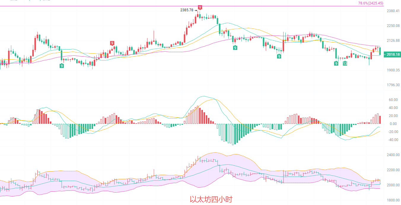 The 4-hour candlestick chart shows a slight pullback, currently oscillating between the MA20 and MA30. While the MACD indicator's DIF is trending upwards, the DEA remains below the zero line, and the volume is weak after the red bars turned green, indicating insufficient upward momentum. The Bollinger Band's middle band at 2012 provides support, while the upper band at 2066 forms resistance. The price is in a narrow trading range, and the short-term direction is unclear, requiring a breakout signal. Those who, like me, entered the market above 2060 can hold and observe for now. After all, the short-term trend remains one of oscillating with a slight downward bias.