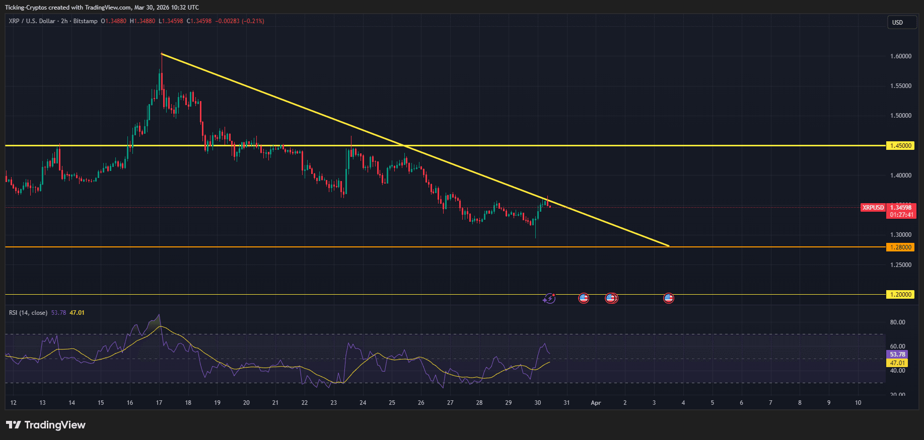 The question "Is $XRP dead?" has resurfaced with a vengeance in early 2026. After a massive bull run that saw the asset peak at $3.65 in July 2025, the token has entered a grueling downtrend. As of March 30, 2026, $XRP is trading at $1.34, representing a 37% decline from its price of $2.10 exactly one year ago.