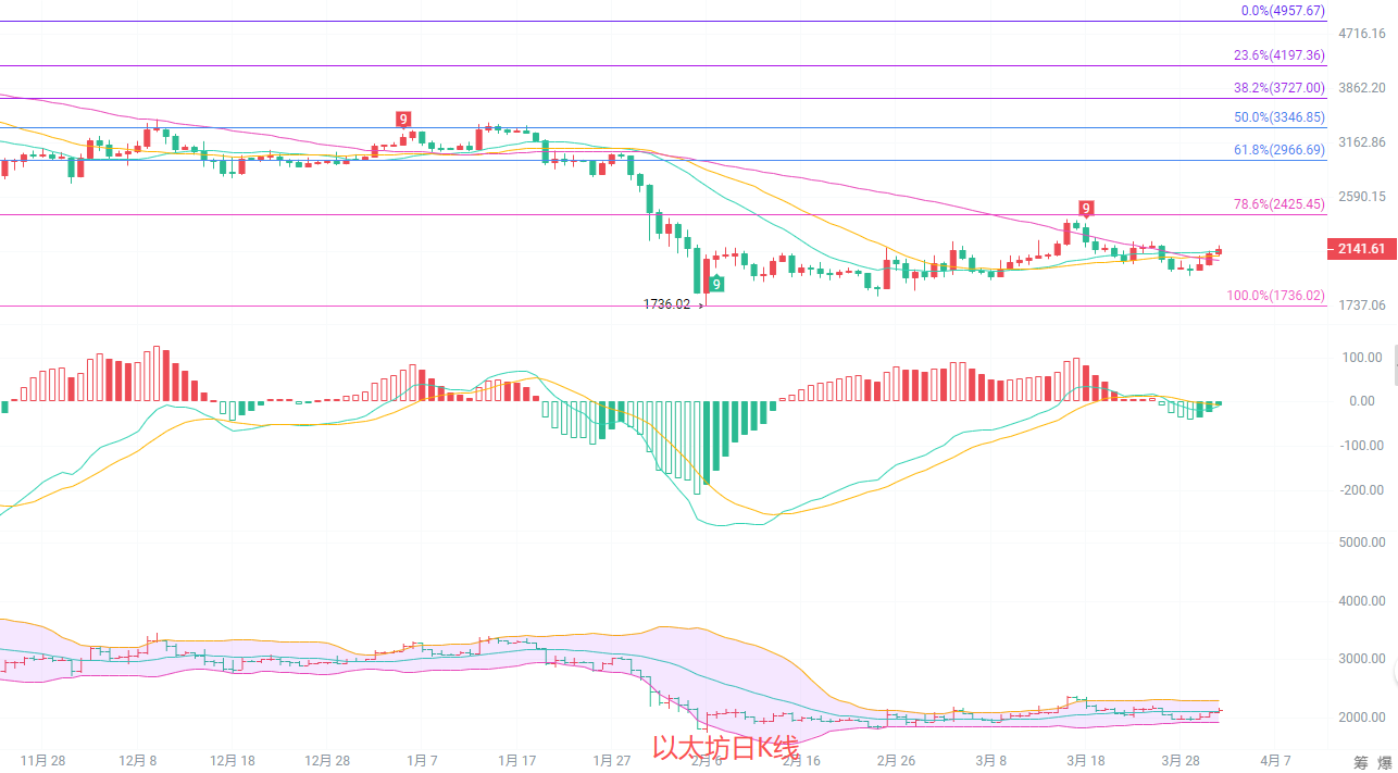 Ethereum is currently priced at 2140. Its recent price action has finally broken out of its consolidation and bottoming pattern, with a steady rise after rebounding from the lows, and it has now stabilized above the 2100 level. Retail investors are most concerned about whether it will continue its upward momentum or pull back. Looking at the chart, the daily chart has completed its bottoming process, and northbound buying power is gradually accumulating. However, there is still strong resistance in the 2400-2500 range. In the short term, it is likely to be a slow and steady upward trend, not a rapid rise. Therefore, avoid chasing highs and patiently wait for pullback opportunities.