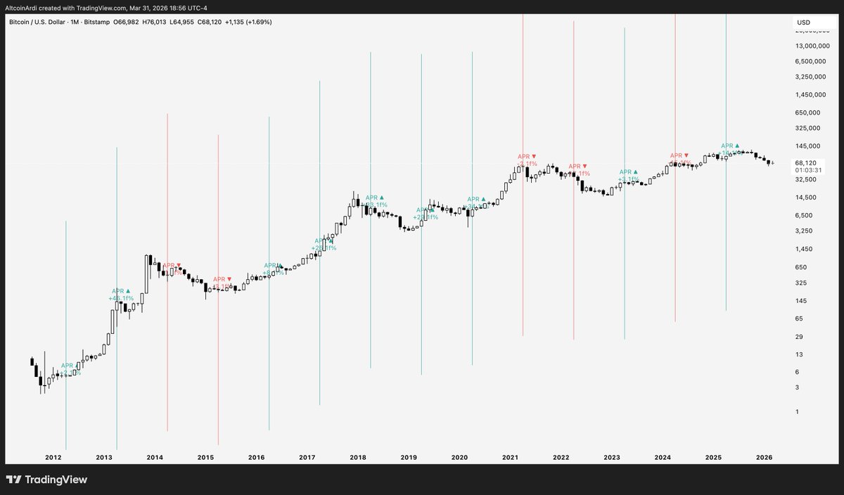 Meanwhile, market watcher Ardi recently discussed Bitcoin’s seasonal trends. He noted that since 2014, April has been the third-best month, behind October and July, with an average return of 9.1% and a 67% win rate.