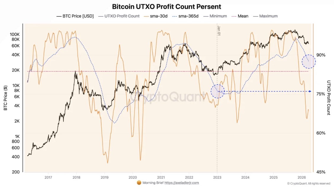 CryptoQuant analyst Axel Adler Jr. revealed this in one of his recent analyses. Notably, he pointed out that as of April 1, 2026, the rate of $BTC coins in profit has risen to 66.4%, and the 30-day moving average remains at 69.1%.