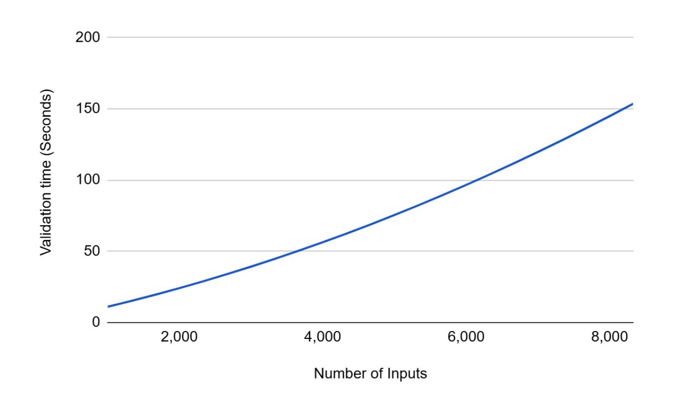 However, current devices are much faster than those from 2015, and inputs can be validated in parallel. Therefore, the validation timeline above may be somewhat conservative for today's devices.