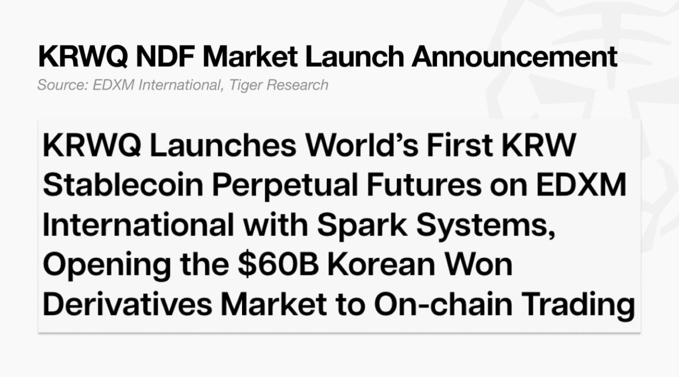 The only difference is maturity. NDFs have fixed expiry; perpetuals have no maturity, operate on-chain 24 hours a day, and deliver the same function at lower cost. Recently KRWQ has launched an NDF market through EDXM International.