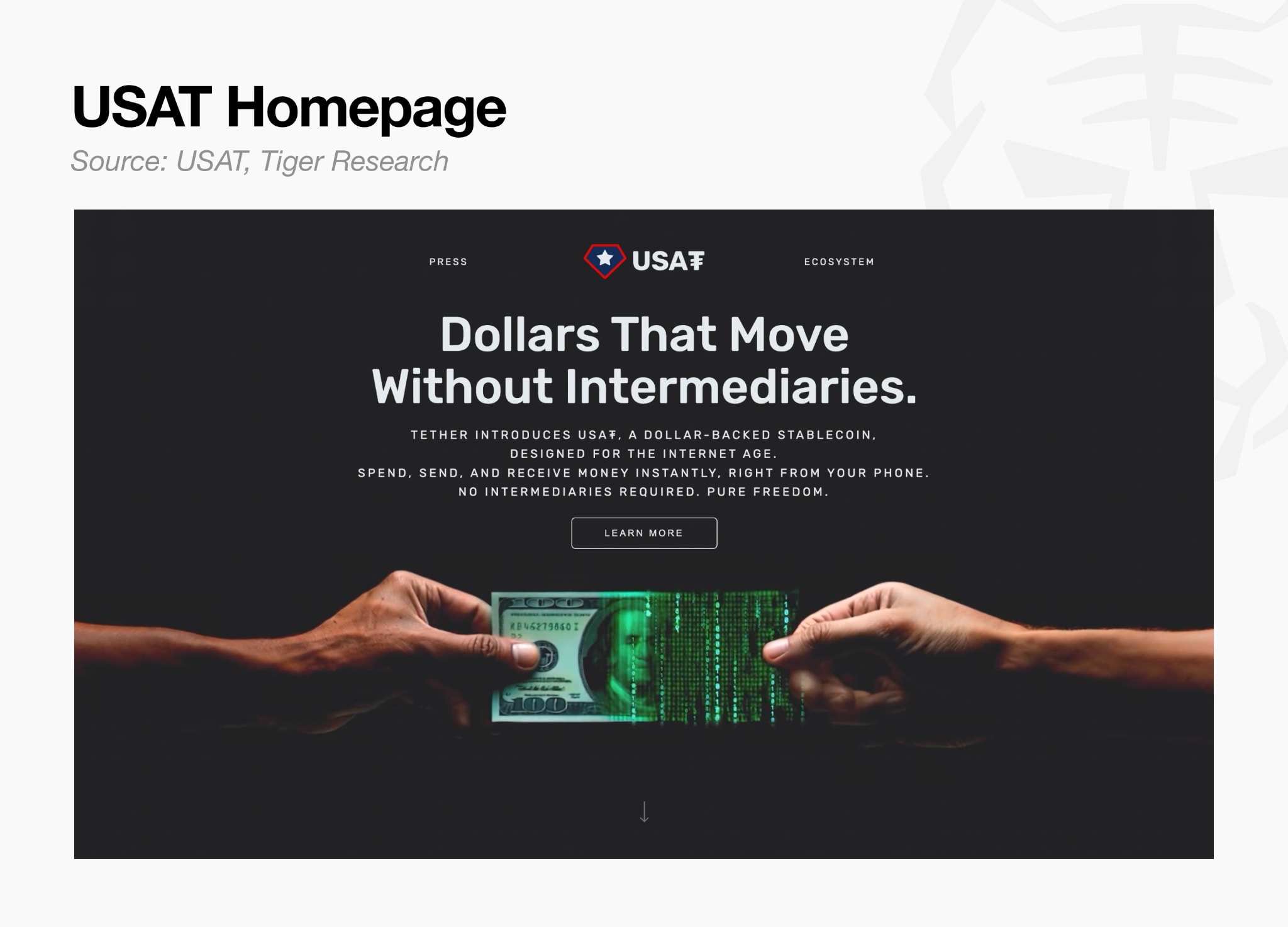 Tether is addressing this by approaching the U.S. market separately. Under the GENIUS Act framework, it launched USAT as a distinct product line tailored to the U.S. regulatory environment, while USDT continues as its global general-purpose offering. The two markets are structurally separated and pursued simultaneously.