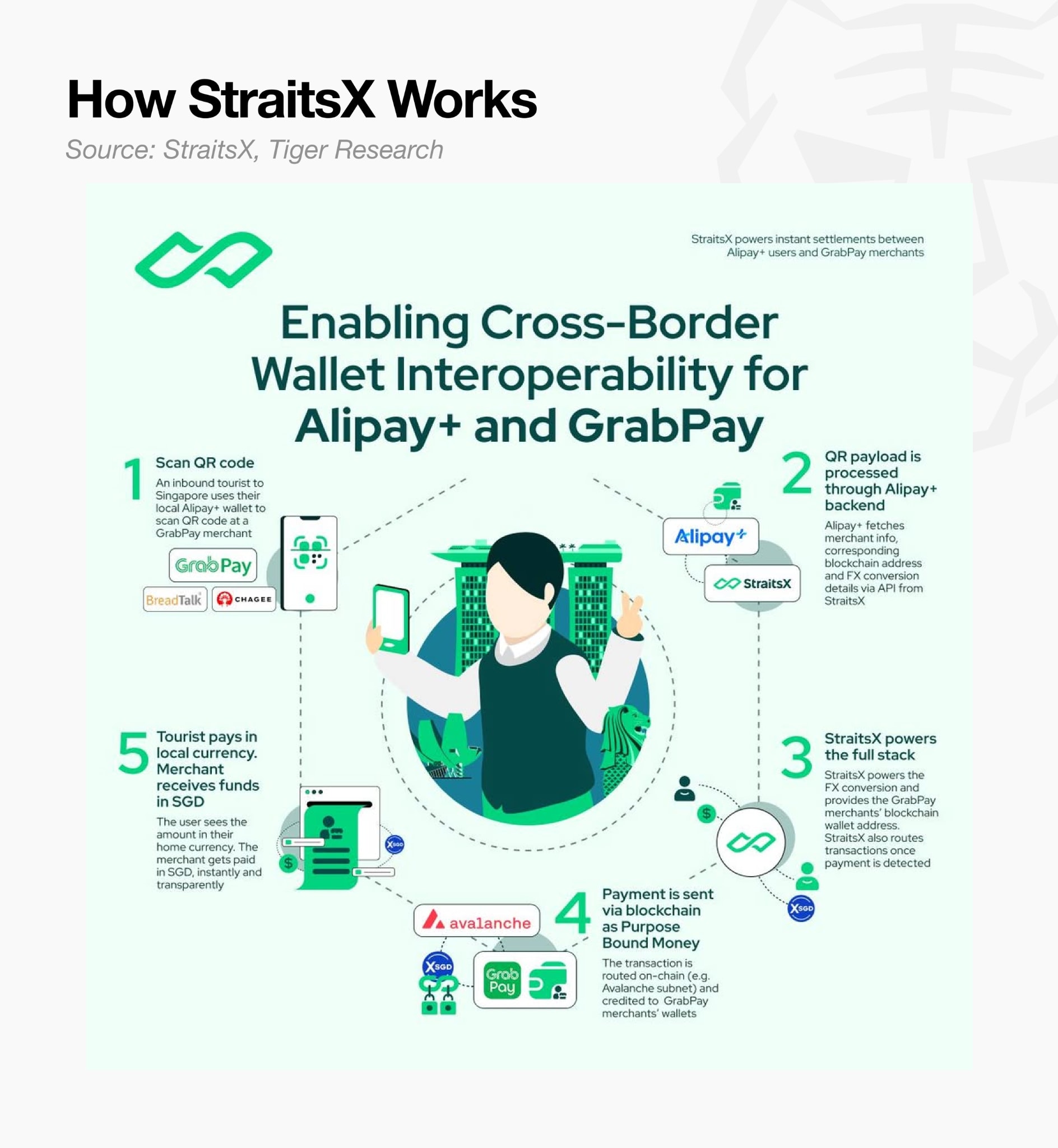 StraitsX treats payment fees, not reserve interest, as its primary revenue source. Integrations with Alipay+, GrabPay, and Visa demonstrate real-world utility, and monthly transfer volume 2.5x its market cap validates the model. Securing an MAS Major Payment Institution license ahead of competitors turns regulation into a moat.