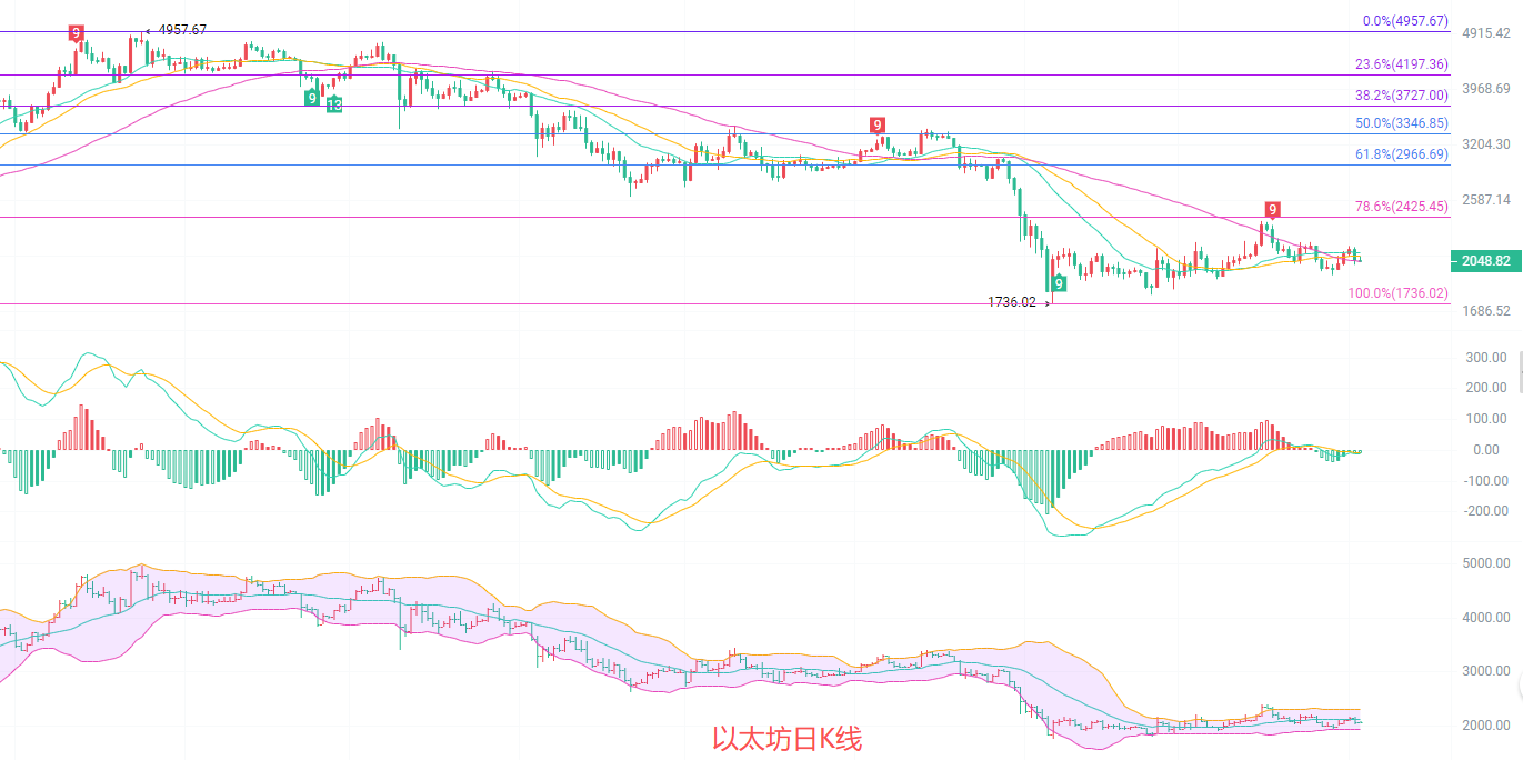 Ethereum is currently priced at 2045. Its recent price action, to put it simply, is a bottoming process on a larger timeframe and oscillation on a smaller timeframe, leaving retail investors confused. Looking at the daily chart, it has just climbed from the low of 1736 and hasn't fully shaken off the lingering effects of the bear market; on the 4-hour chart, it's been fluctuating between 2000 and 2100, failing to gain a clear advantage in either direction. Many people are debating whether to buy the dips or short, but the key is whether the crucial support and resistance levels can hold. Today, I'll use two charts to explain the market logic and entry points clearly, making it easy for beginners to understand.