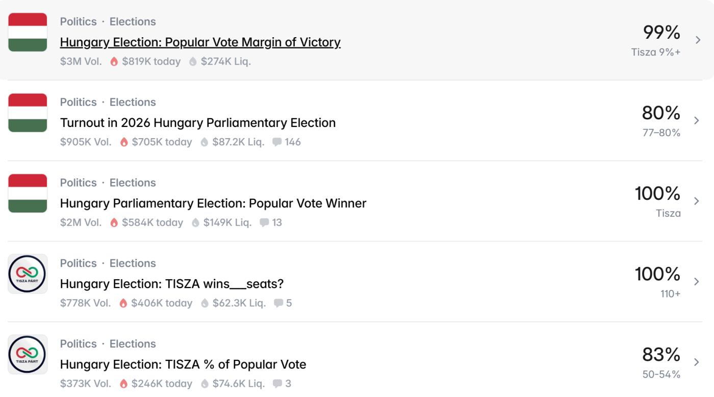 The shift may also validate sentiment in crypto prediction markets. Traders on Polymarket placed millions in bets against an Orbán victory, positions that now appear prescient as results solidify.