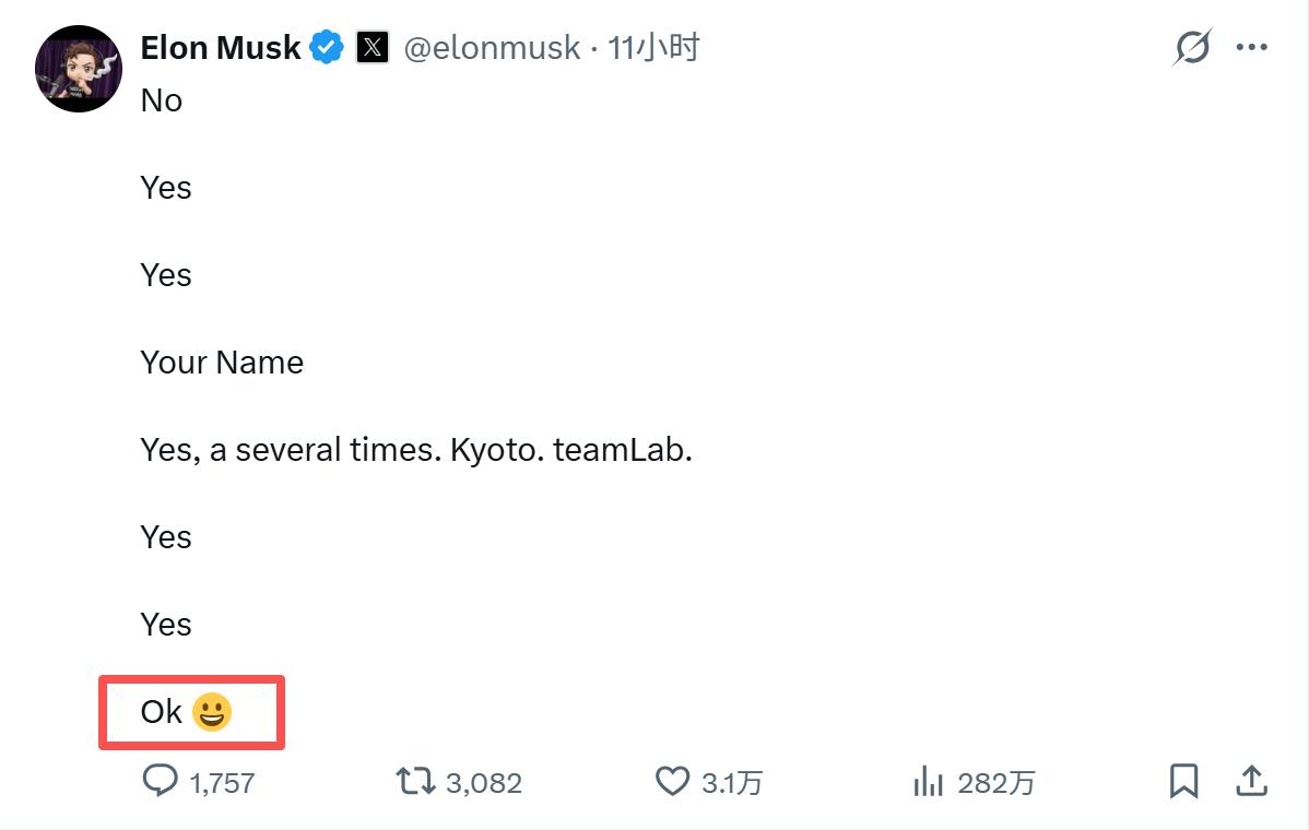 Musk agreed, saying he would be back soon. This "signal" was quickly picked up by the on-chain market.