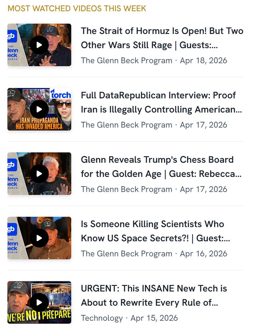 Given Glenn Beck's highly reactionary content, those interested are encouraged to search for and watch it themselves.