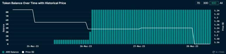 Wallet 0xB15 collects continuously on DEX after the token is listed 5M Arbitrum token then continues to withdraw another 5M token from Binance to the wallet a few hours ago, in total this wallet is holding 10M ARB but the average price is quite high at $1.3 and recorded a loss of ~$2M.