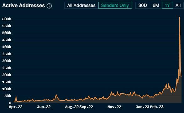 The number of active wallet addresses per day on the Arbitrum network has been increasing steadily every day throughout 2022, however on the day of claiming the token AirDrop , a new record was reached of 600K wallets.