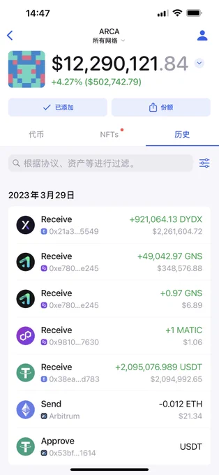 arca added a position of $dydx last night, holding a total of 5.8 million of $dydx, and at the same time created a new position of 340,000 US dollars $gns After the last position opening $imx, imx increased by 70%. This time the new positions are all on #dex (including the 1.9 million pledged $gmx) Speculation that they may be betting on the bearish sentiment triggered by the recent regulatory incident on centralized exchanges Figure 4 shows dydx news, superimposed with a V4 market?