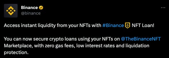 NFT lending is another hotbed of crypto innovation with significant traction. Hot on the heels of Blend’s stellar usage, Binance is launching an NFT lending service.