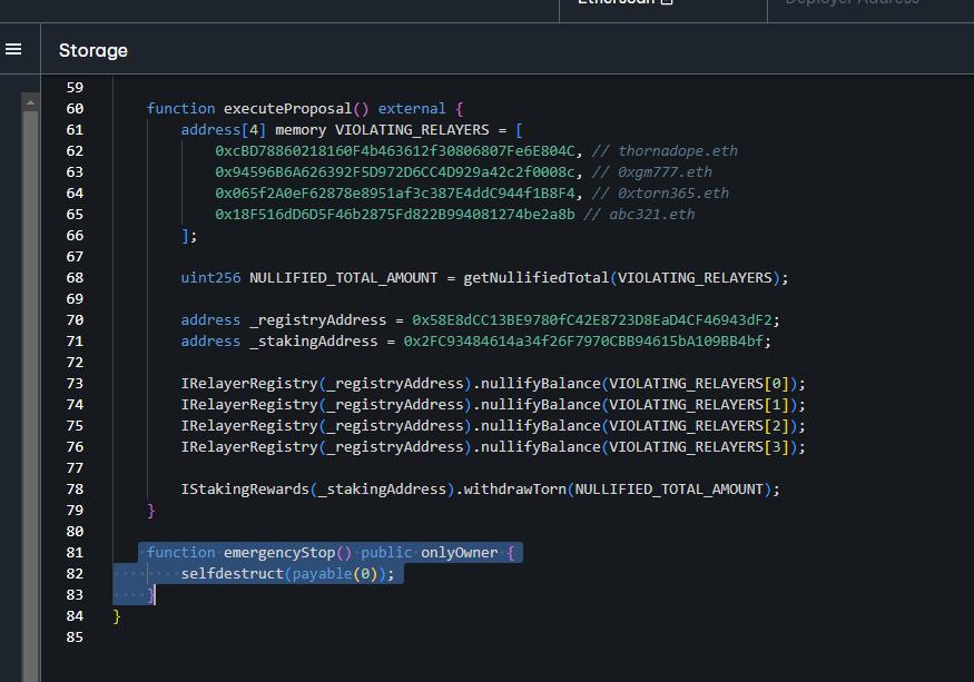 3. The attacker then submitted contract2 as a proposal for the Tornado Governance contract, as seen in the transaction here.