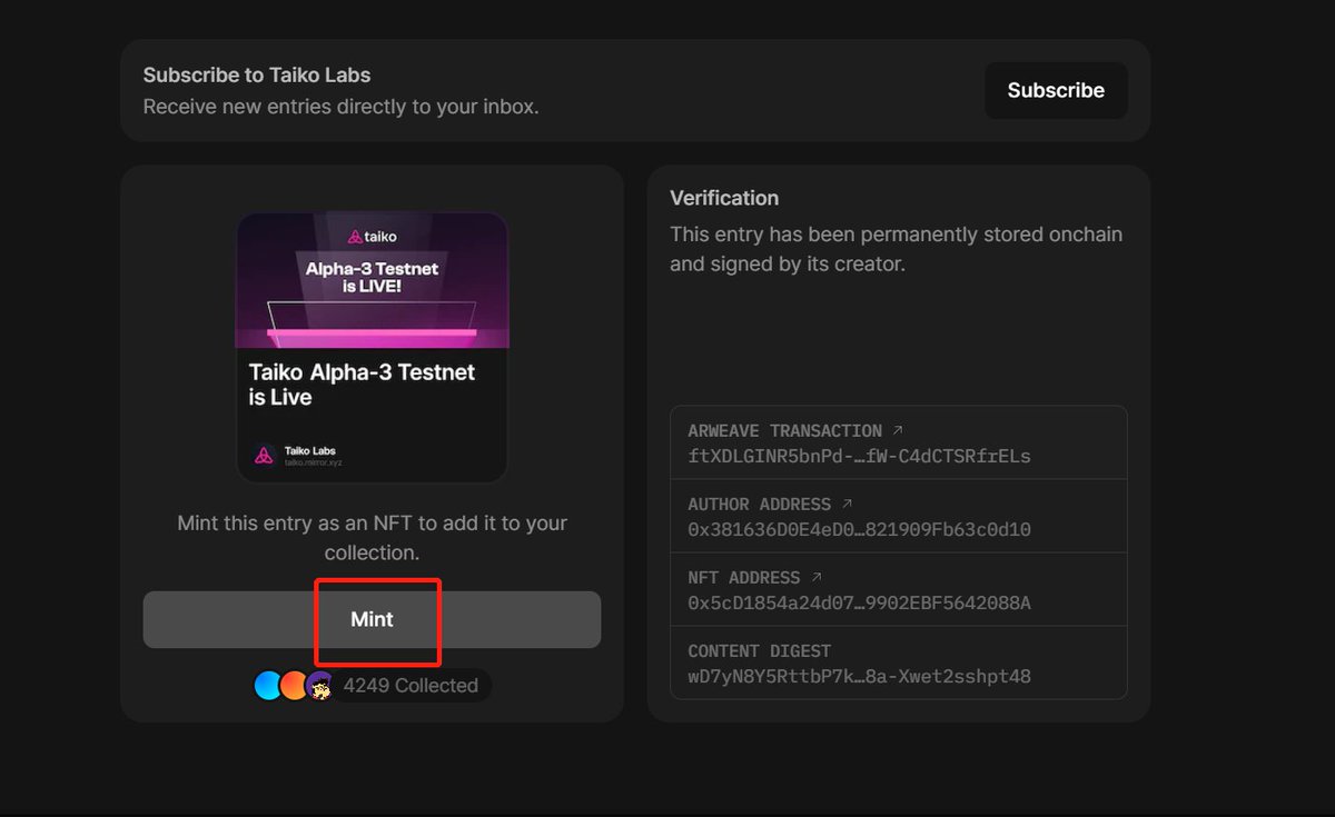 - Enter the official mirror: taiko.mirror.xyz/wD7yN8Y5RttbP...