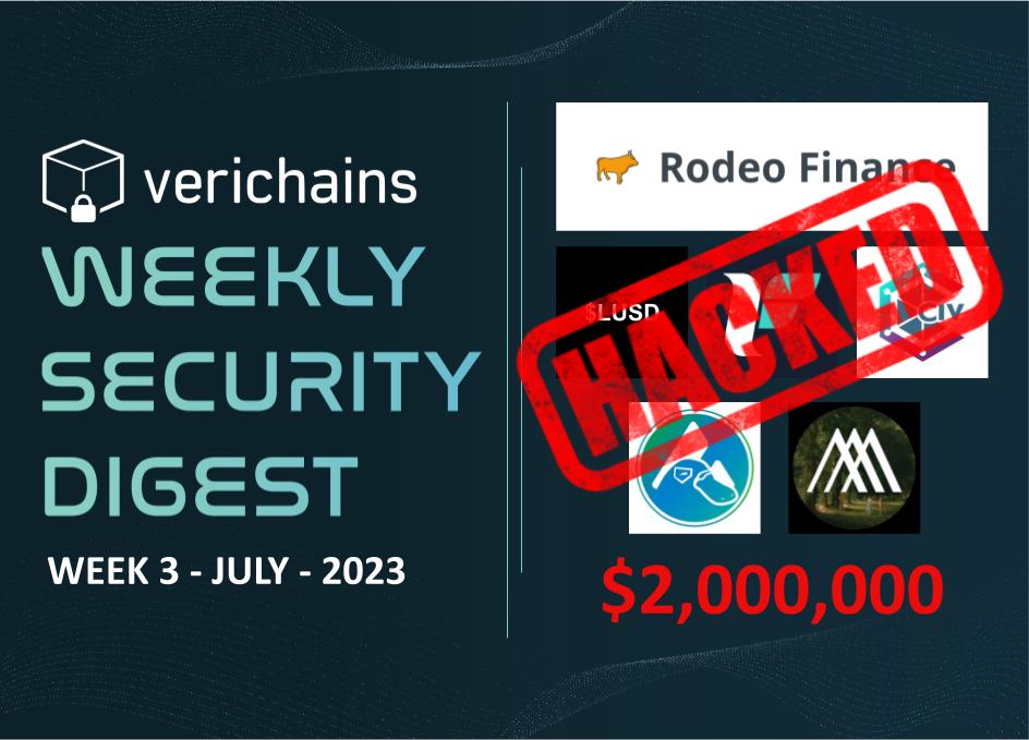 Last week, the DeFi market suffered heavy losses with 6 major incidents, losing over $2,000,000. Among the affected projects, Rodeo Finance incurred the most substantial impact, facing losses amounting to approximately $888,000.