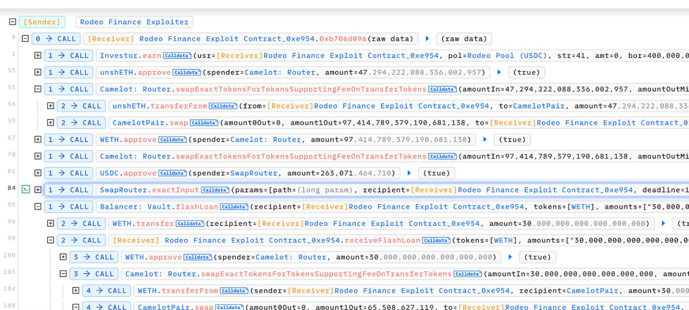 In summary, the attackers strategically navigated through multiple transactions, exploiting vulnerabilities in the system to their advantage, and successfully executed their plan, resulting in a substantial financial loss for the Rodeo Finance protocol.
