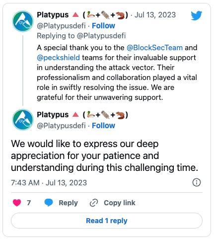 Earlier this year, the protocol was hacked for over $8,000,000 due to a flaw in the USP solvency check mechanism, allowing the attacker to exploit a logic error and steal funds. However, the attacker forgot to code a way to collect the stolen funds. Platypusdefi recovered the 2.4 million USDC due to a mistake made by the attacker.
