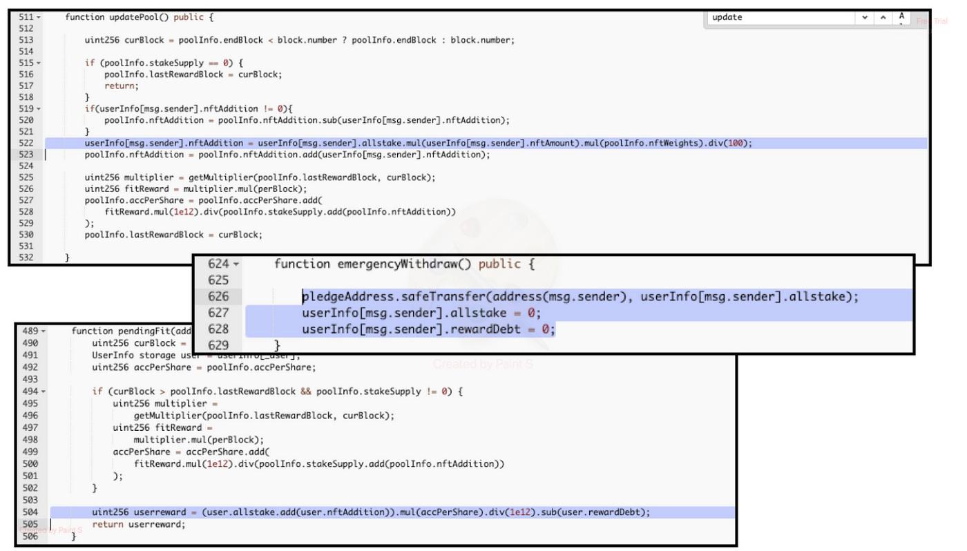 A token called $BNO was hacked for over half a million dollars due to a flaw in the reward calculation mechanism. The "emergencyWithdraw" function, designed for instant ERC20 token withdrawal, failed to account for NFT stake records. By exploiting this vulnerability, the attacker deposited both NFTs and ERC20 tokens and executed the "emergencyWithdraw" exclusively for the ERC20 tokens. This allowed the attacker to bypass the reward calculation check, enabling them to claim undeserved rewards and causing significant financial loss to the pool and its users.
