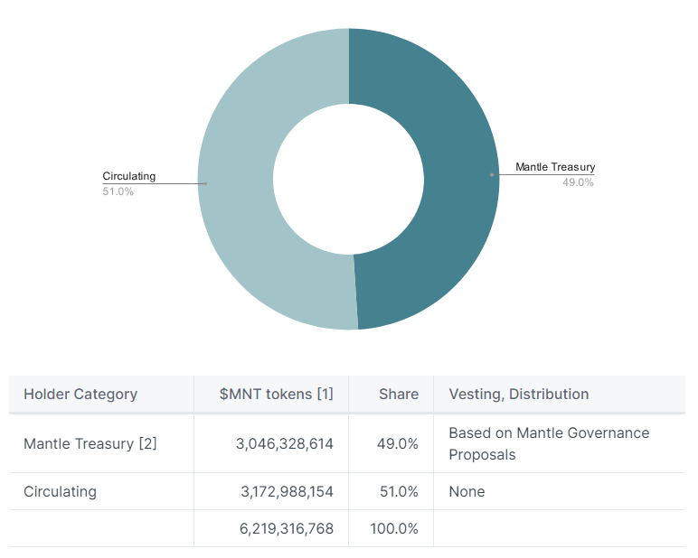 As can be seen from the distribution chart, the Mantle Treasury holds nearly half of the $MNT tokens. The official also elaborated on this in the project documents: $MNT held in the Mantle treasury can be regarded as "uncirculated". The distribution of Mantle Treasury's $MNT tokens is subject to the Mantle governance process, and the budgeting, fund raising, and distribution processes follow strict procedures.