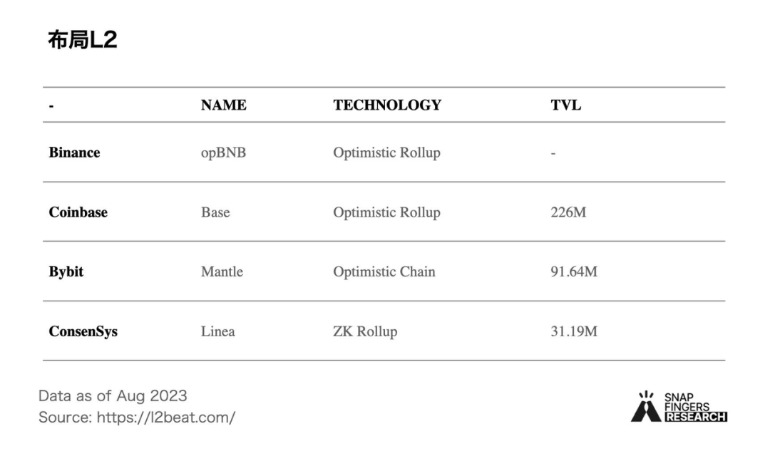 Platforms with a large number of users have all deployed in L2 this year: Binance’s opBNB, Coinbase’s Base, Bybit-backed Mantle, and Metamask’s Linea. Base, as the L2 launched by Coinbase, is a reflection of the further expansion of its user life cycle value. The layout of Binance L2 is more of a strategic intention. If the L2 network wants to remain active, it needs enough users to use and contribute liquidity. Binance has the largest user exchange platform in the world. Secondly, BNBchain users are highly active and can Leverage its own large user base to force or encourage them to use their own Layer 2, thereby helping the network grow rapidly.
