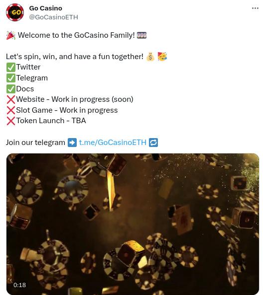 -New GambleFi protocol called @GoCasinoETH. Twitter bio states “GoCasino - Where Luck Meets Fun! Roll the roulette wheel and spin the slots for your chance to win big. 🎲 Join us for excitement and big wins. #soon #casino”.