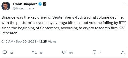 -Interesting tweet re: trading declines/Binance/etc from @fintechfrank: