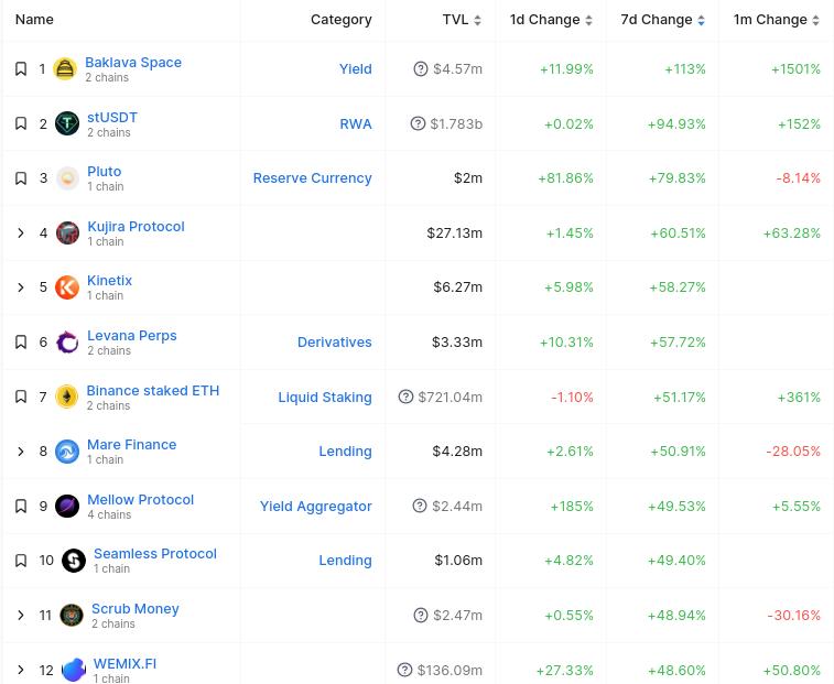 Here’s The Top 12 Fastest-Growing Protocols By TVL On The Weekly (from @DefiLlama - note: this one has a TVL filter so only includes protocols with at least $1M TVL):