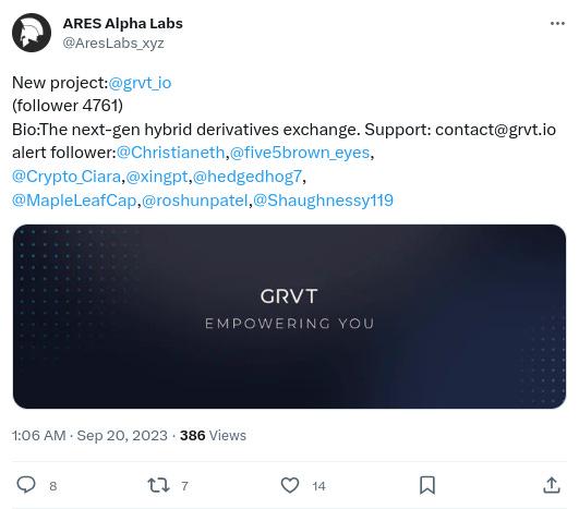 -New project called @grvt_io. Twitter bio states “The next-gen hybrid derivatives exchange…” h/t @AresLabs_xyz: