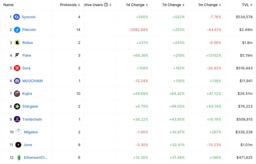 Here’s The Top 12 Fastest-Growing Chains By TVL On The Weekly (from @DefiLlama):