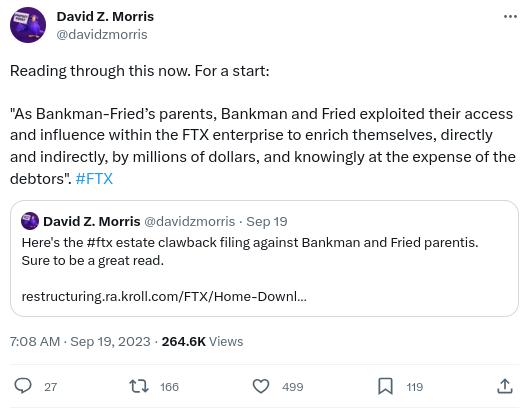 -Lots of interesting revelations coming out about SBF’s parents’ involvement in FTX, thread below from @davidzmorris: