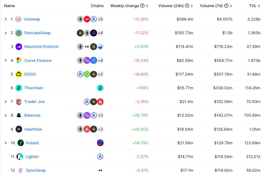 Here’s The Top 12 Dex’s By 7 Day Volume (from @DefiLlama):
