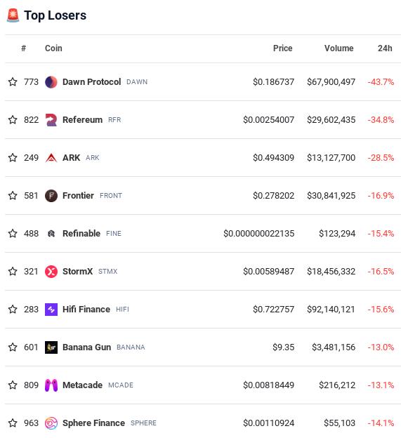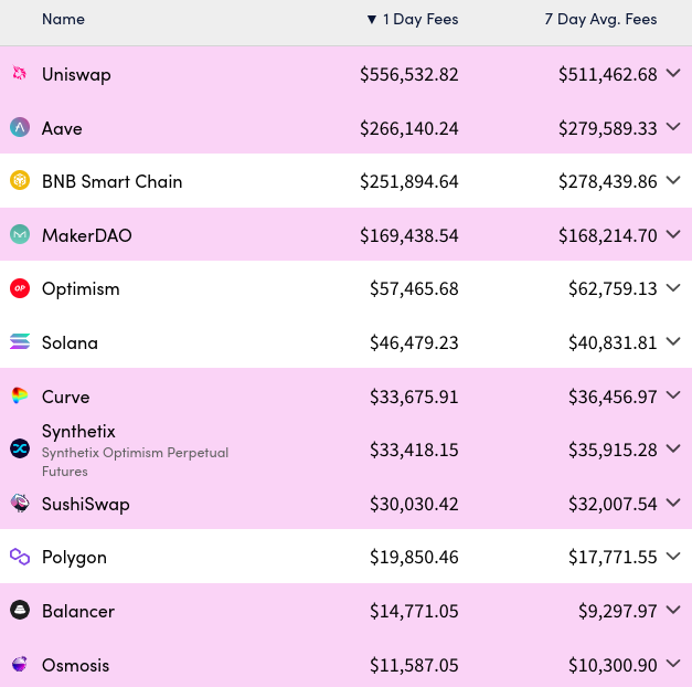 Protocols are mixed today. Protocols with at least $10M TVL up at least 100% on the monthly include W3 Foundation, friendtech, Binance Staked ETH, Silo Finance, stUSDT, Liquid Collective, and Tangible.