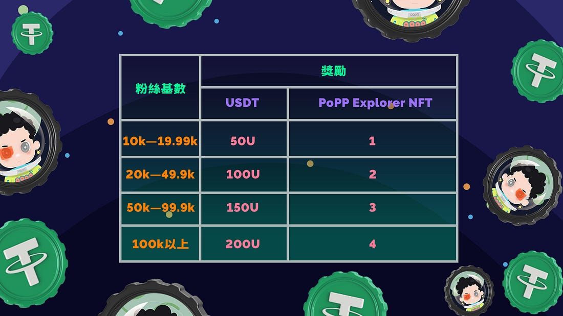 We hope to subvert the creator economy through PoPP, with the goal of allowing creators and fans to quickly monetize content and influence. We will provide a total of US$30,000 PoPP as rewards to encourage those brave creators who dare to take the first step.
