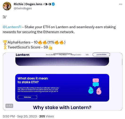 -New project called @LanternFi. Twitter bio states “Staking doesn't have to be scary (coming soon!)”. h/t @twindoges: