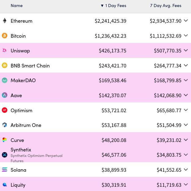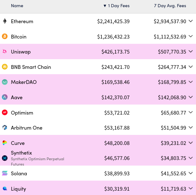 Protocols are mixed today. Protocols with at least $2M TVL up at least 50% on the weekly include Waves reserve currency protocol Pluto, WemixFi, multichain yield aggregator protocol Mellow Protocol, Conflux staking pool protocol ABC Pool, multichain cdp protocol Kurrency, Kujira protocol, multichain protocol (no category designation) ScrubMoney, and Kava lending protocol Mare Finance.