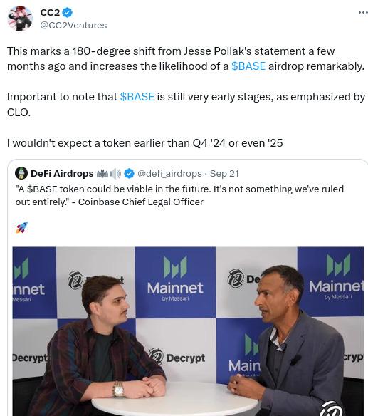 -Statement from Coinbase’s Paul Grewal that they “can’t rule out” a future token generated lots of discussion yesterday, h/t @CC2Ventures: